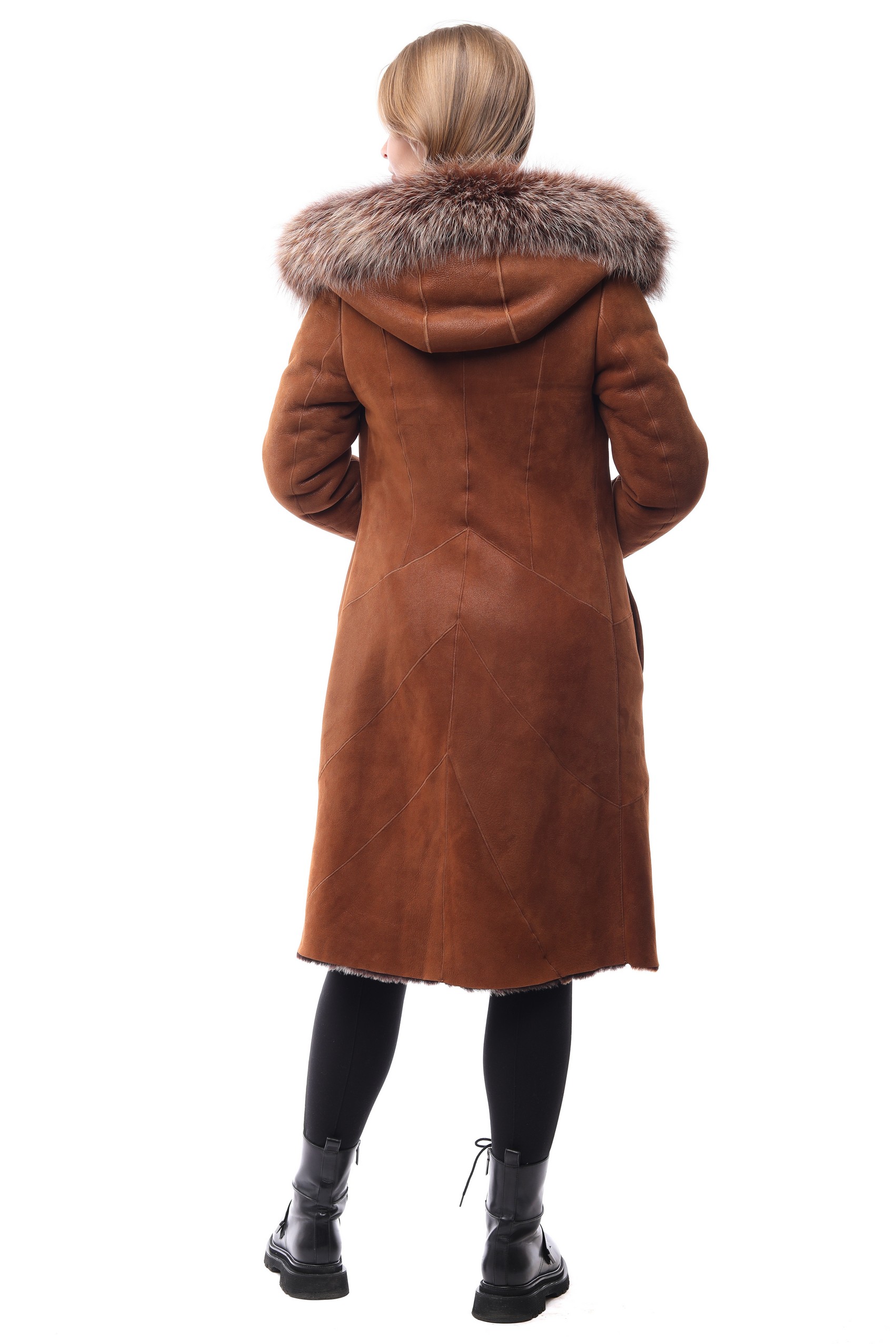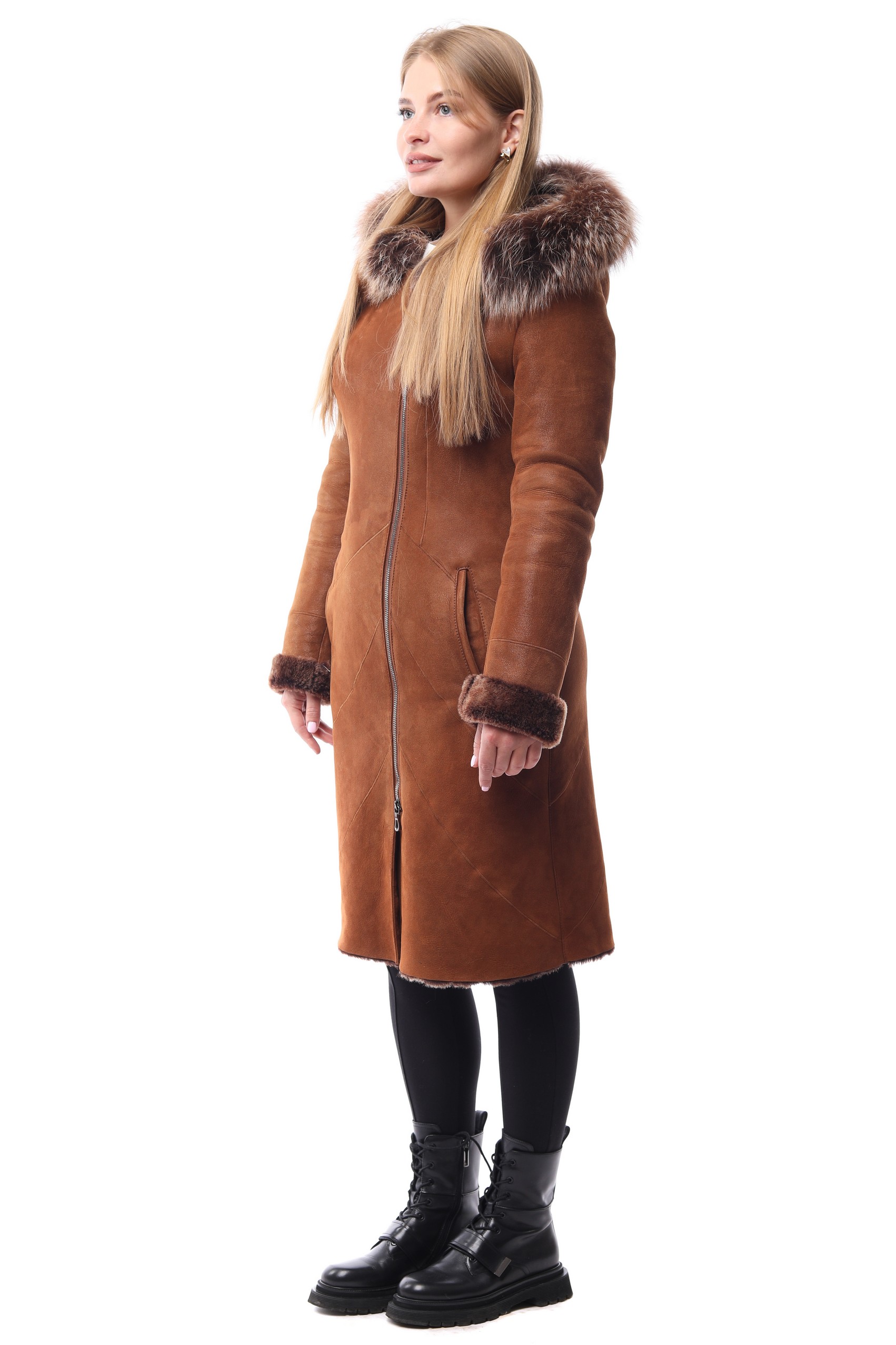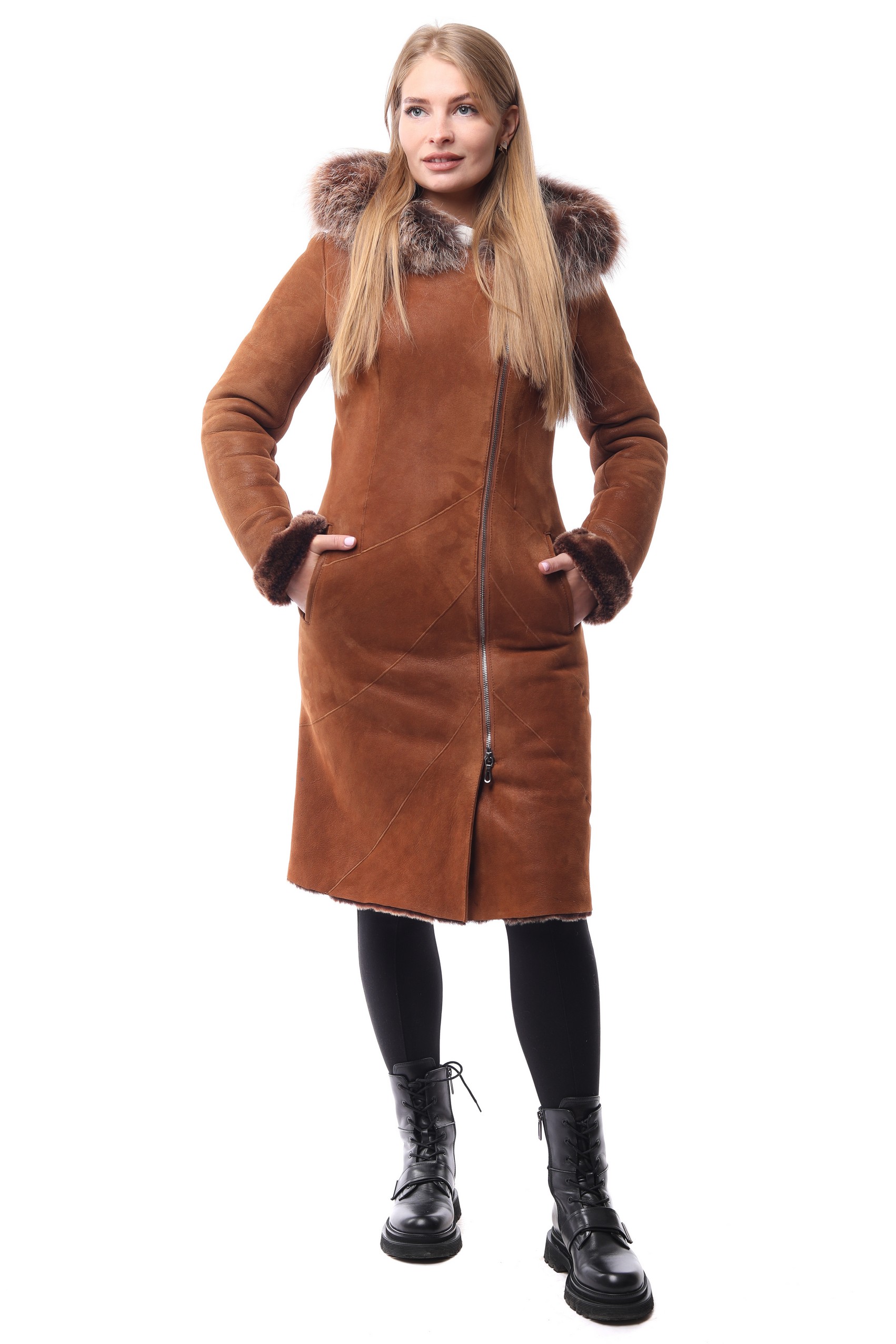 Полупальто нагольное женское Lale Antilop A137 натуральный мех-овчина,отд капюшона - мех лисы крашенная