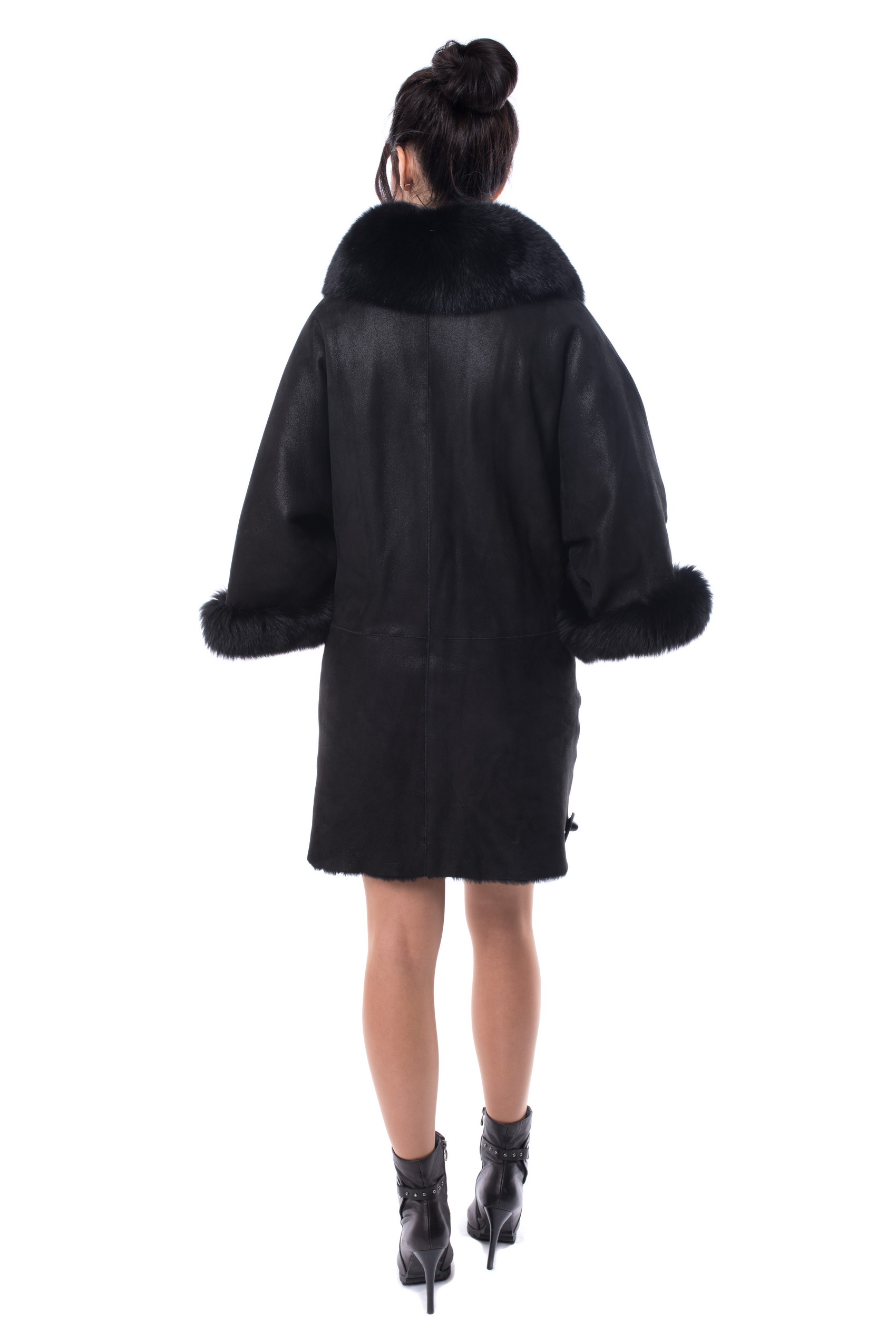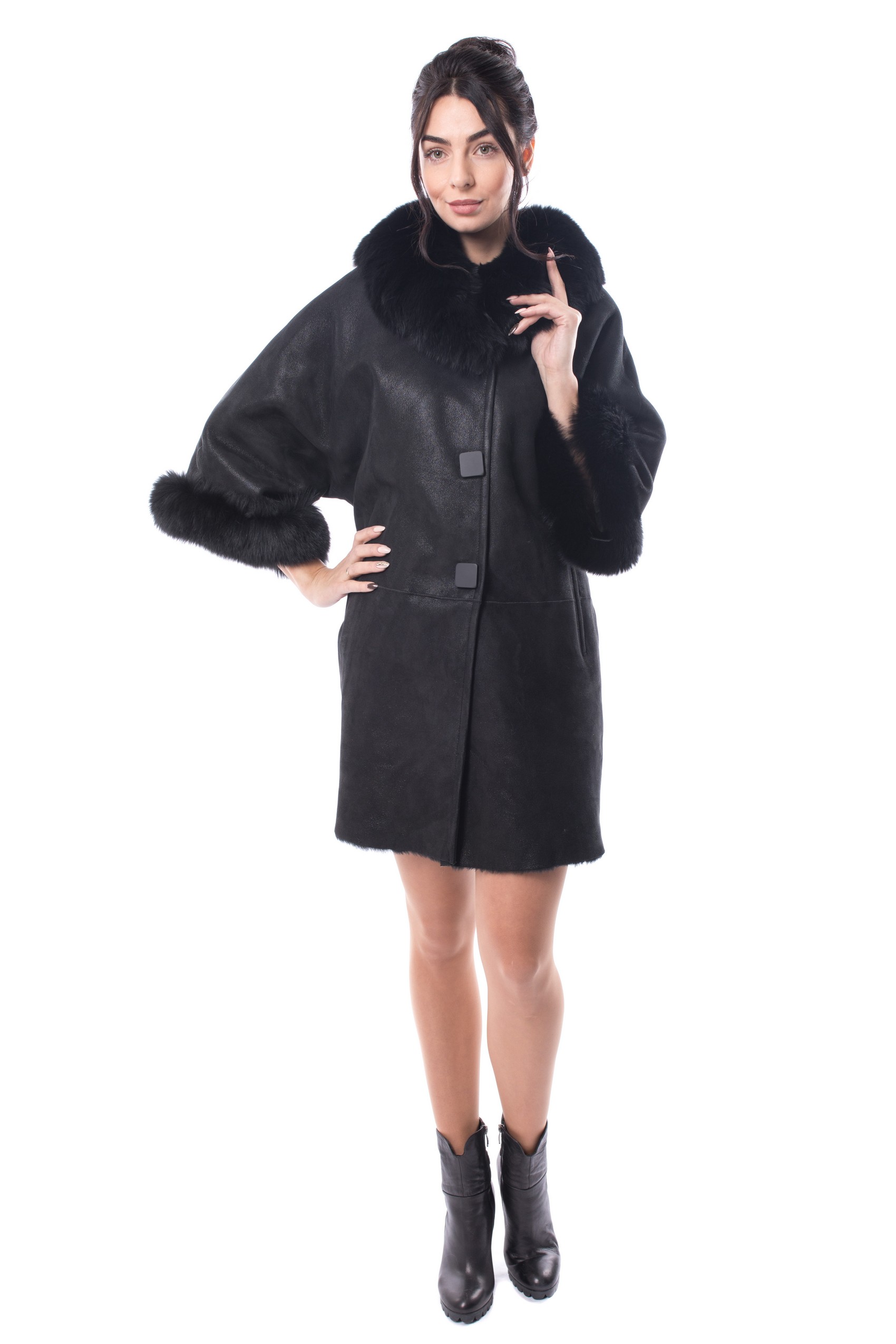 Полупальто нагольное женское Lale Antilop A413 натуральный мех-овчина,отделка- мех лисы крашенная