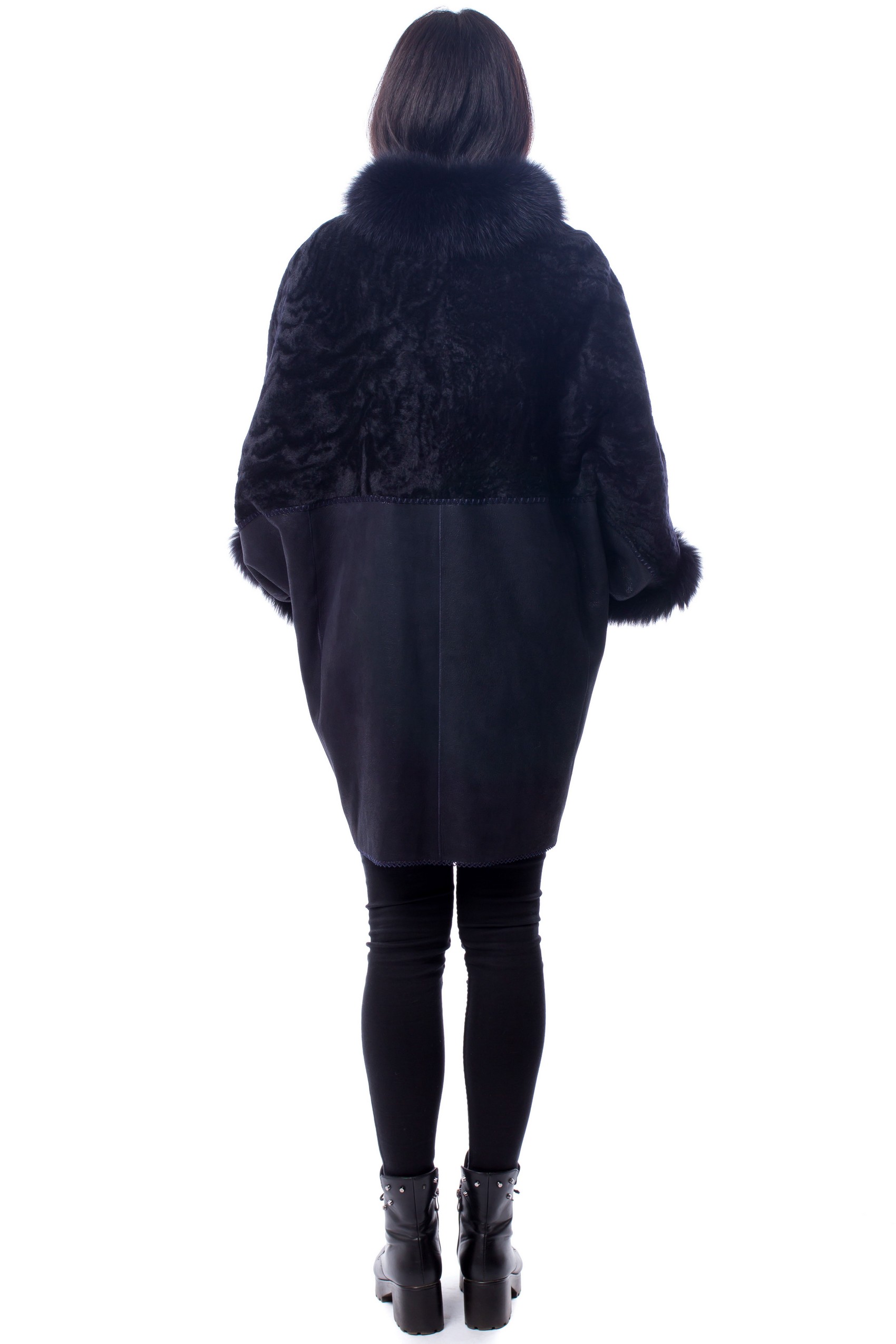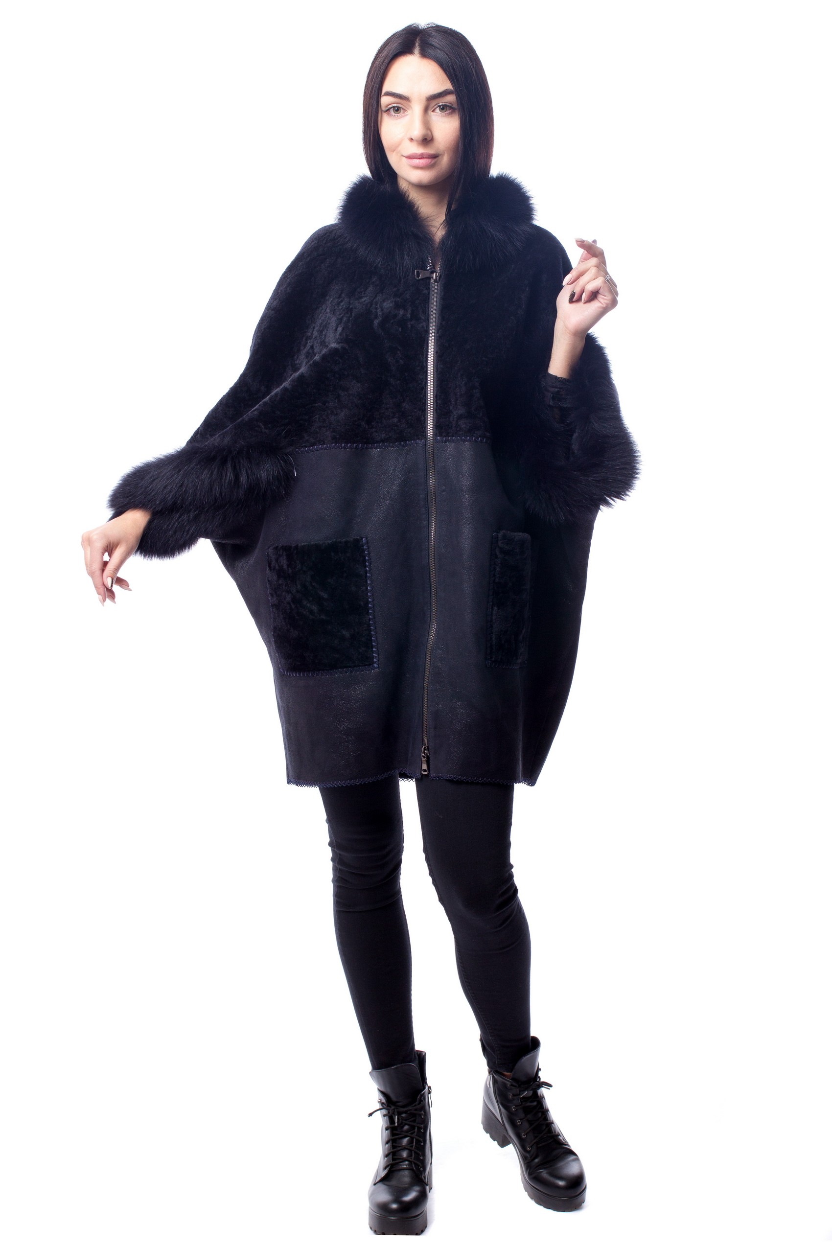 Полупальто нагольное женское LINDI WEST 5024 натуральный мех-овчина,отделка- мех лисы крашенная